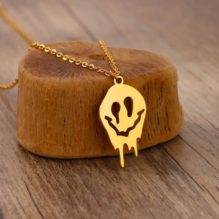 Stainless Steel Smiley Face Melting Pendant Necklaces For Women Gold Color Stainless Steel Necklace Aesthetic Party Jewelry Gift – Sumsfashion